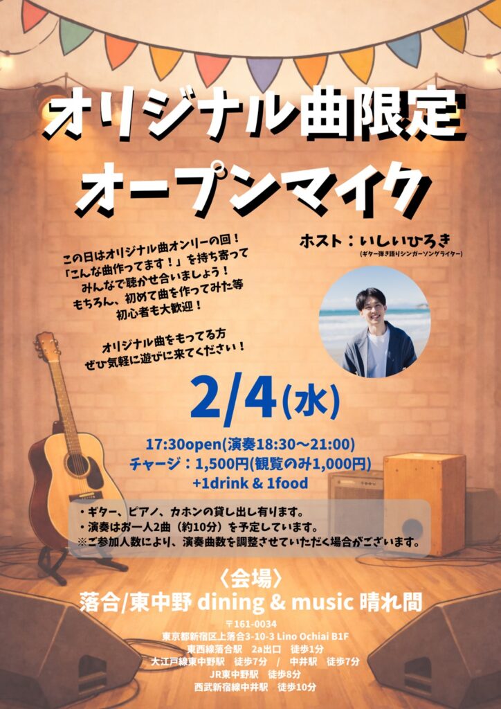 シンガーソングライターの方はもちろん、曲を作ってみたけど披露する場所がなかった人も大歓迎!