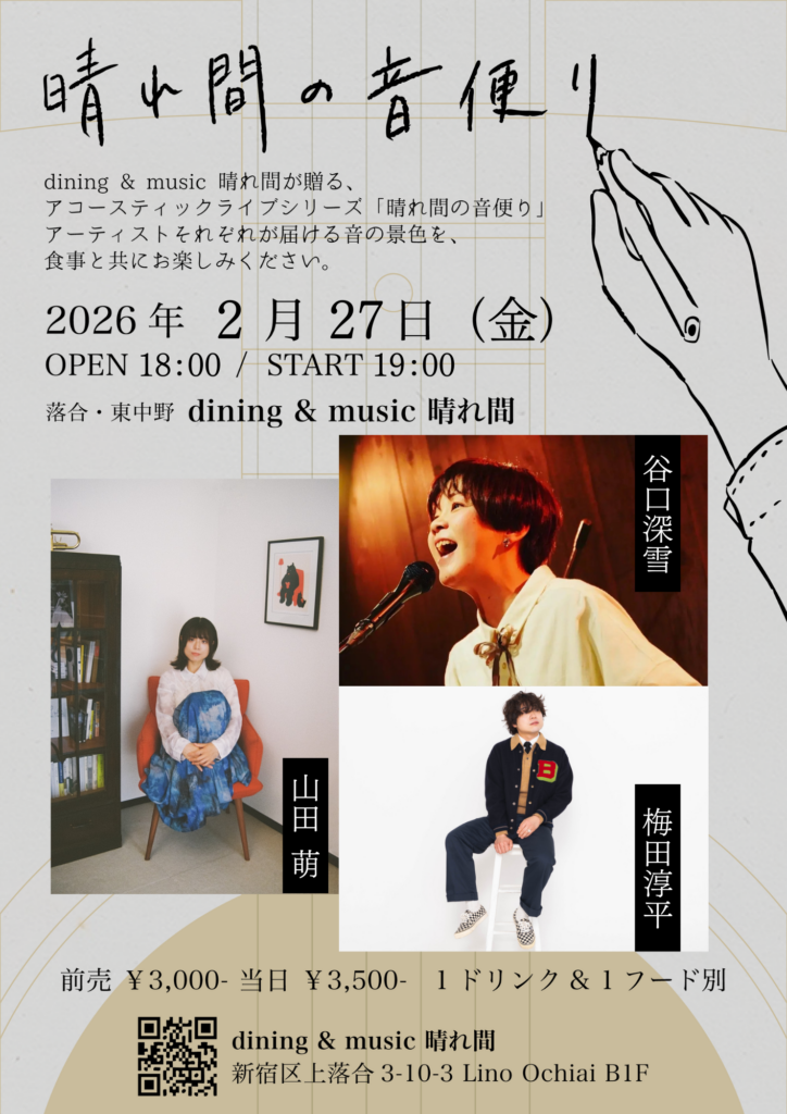 OPEN 18:00 / START 19:00 前売 ¥3,000 当日 ¥3,500 1ドリンク&1フード別