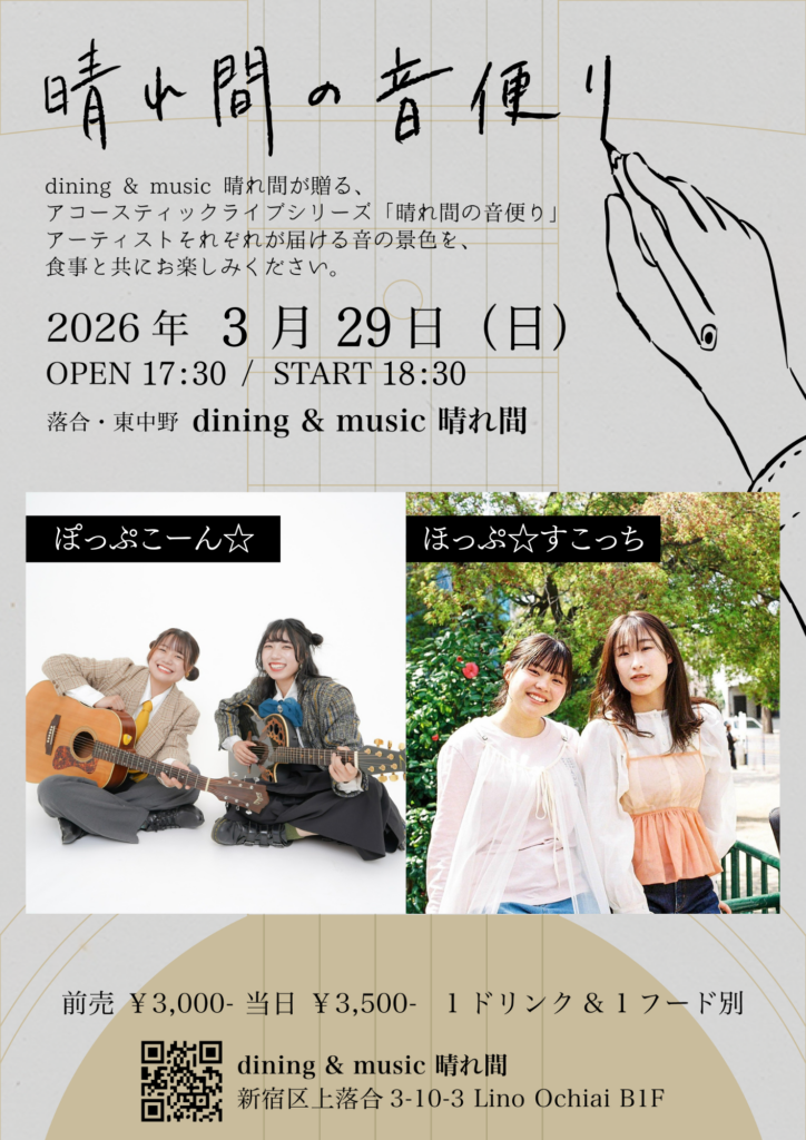 OPEN 17:30 / START 18:30 前売 ¥3,000 当日 ¥3,500 1ドリンク&1フード別