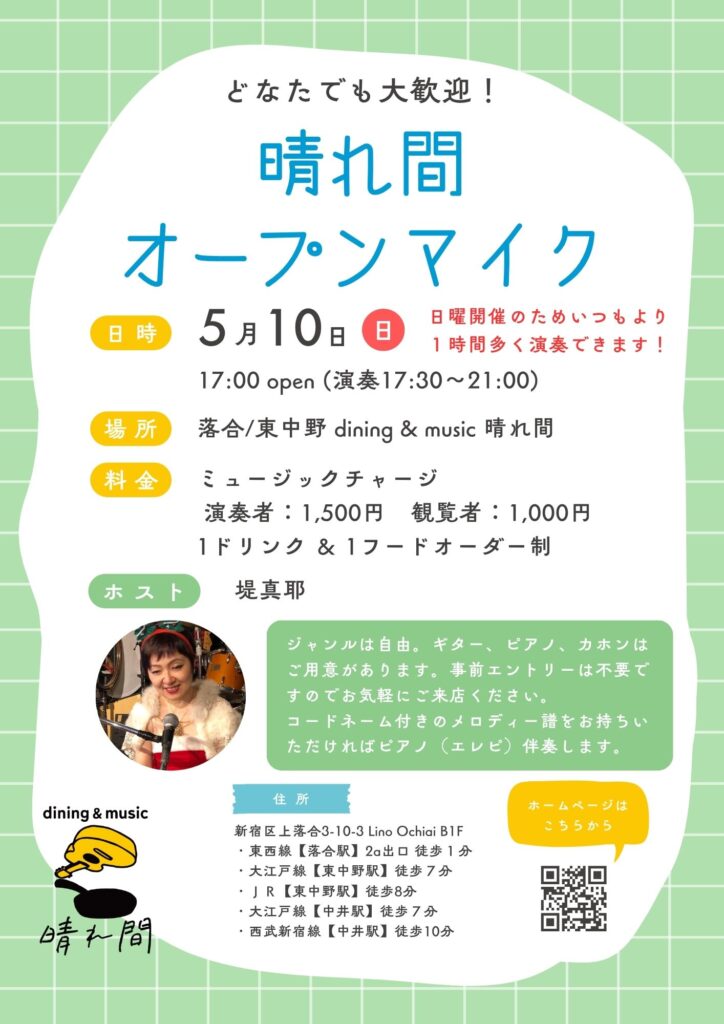 日曜開催のため、いつもより1時間長く演奏いただけます。